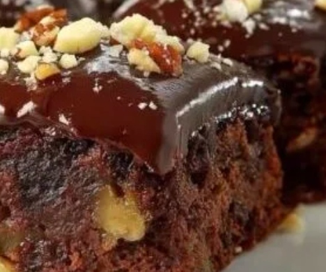 Изсипете глазурата върху охладения кекс и поръсете със смлени ядки.