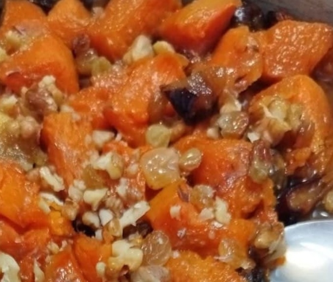 Печете около 40–50 минути, докато тиквата омекне и се появи лек карамелен сос.