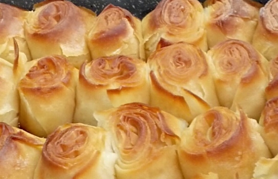 12. Подредете парчетата право в тавата – с разреза нагоре, така че да приличат на рози.